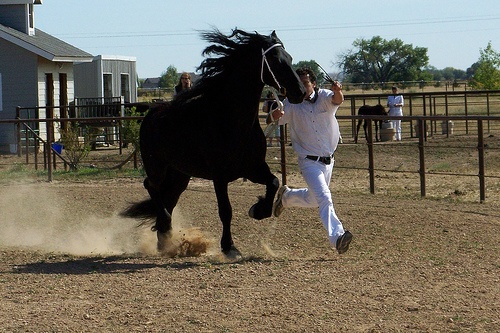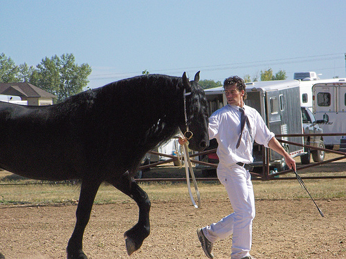 The horses are shown at a walk and trot by hand. As you can see in the photo above, the handlers or runners, really have to be able to run fast to keep up with the high stepping friesians.
